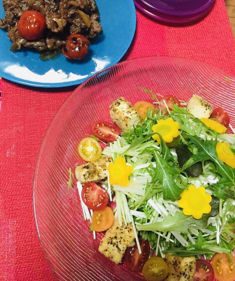 スーパーで買える材料ですっごくおしゃれに盛り付け&仕上げをされててすごいなと思いました。料理している時に一か所からほとんど動かなかったことにびっくりしました。自分でもできるようお家に帰って頑張ります。美味しいごはんありがとうございました。